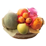 メロン(熊本県、茨城県または千葉県産)、デコポンR(熊本県または佐賀県産)、河内晩柑(愛媛県または熊本県産)、シナノゴールド(青森県産)×各1、枇杷(長崎県産または千葉県産)×3、カラーオーナメント付