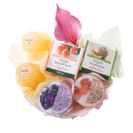 果実ゼリー(王林、パイン)、クリスタルデュオ(マンゴープリン&白桃ゼリー、バナナプリン&マスクメロンゼリー)、フルーツジュレ(グレープ、ピーチ)×各1、カラーオーナメント付