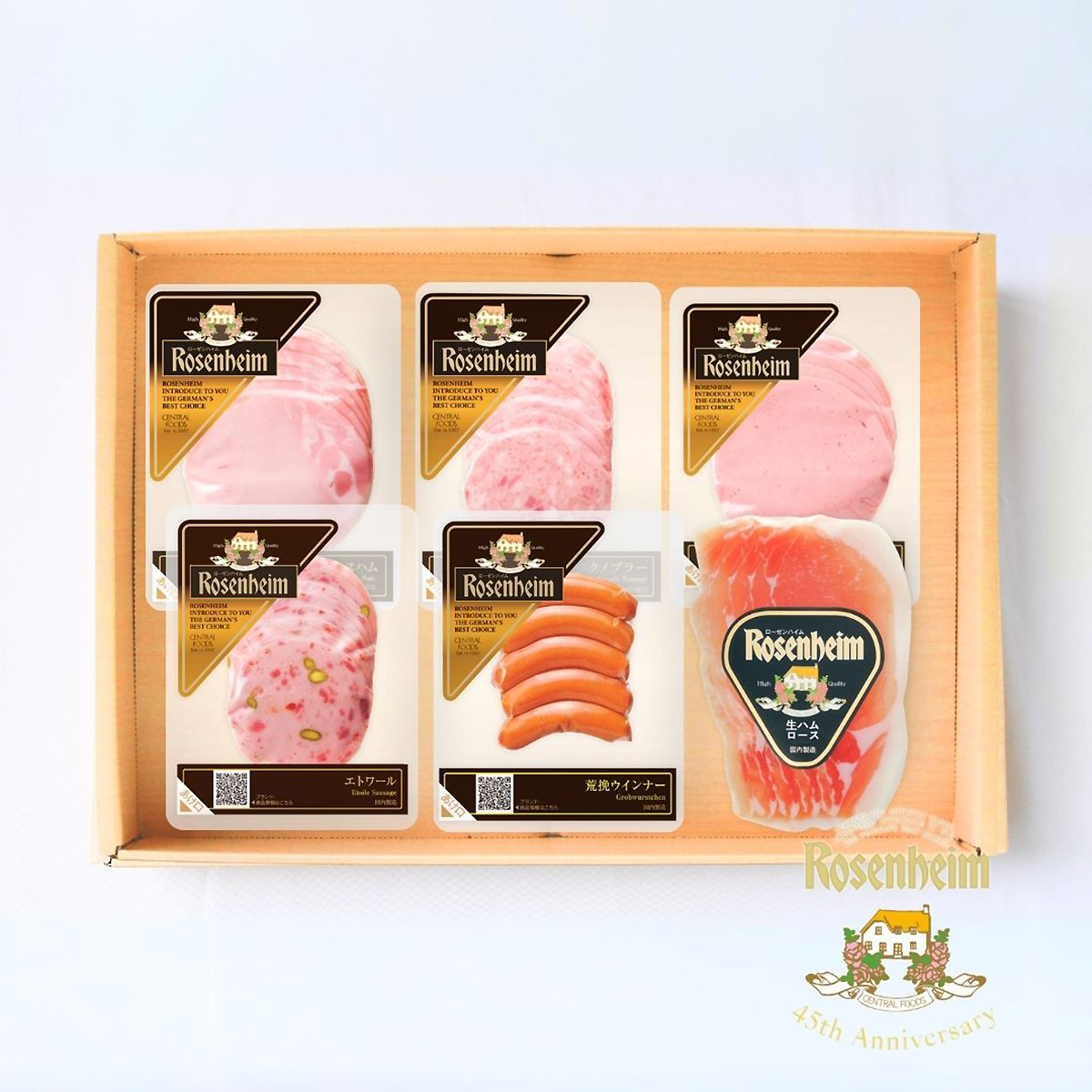 長年愛されてきた〈ローゼンハイム〉の定番商品を、ひと箱に詰合せたバラエティセットです。ハムやソーセージなど、食卓で使いやすいアイテムを中心にセレクト。朝食や軽食、おつまみまで、さまざまなシーンでお愉しみいただけます。「何を送ろうか迷ったとき」に、安心して選べる詰合せセットです。