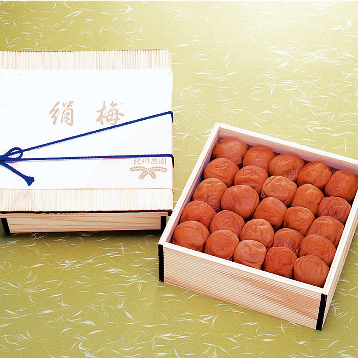 明治35年に当時の園主、高田貞楠氏が60本あった梅の種苗から美しい実がなる1本を発見。これを高田梅として育てました。高田梅は数十年かけて改良を重ねさらに県立南部高校園芸科の協力を得て、現在の「南高梅」が生まれました。本場紀州の「南高梅」は、表皮がうすく果肉が厚く、とても柔らかく、 その品質の良さは全国一を誇っております。 自然の旨味を損なうことなく丹精こめて おいしく漬け上げました。 特によりすぐりの大粒をお届けします。