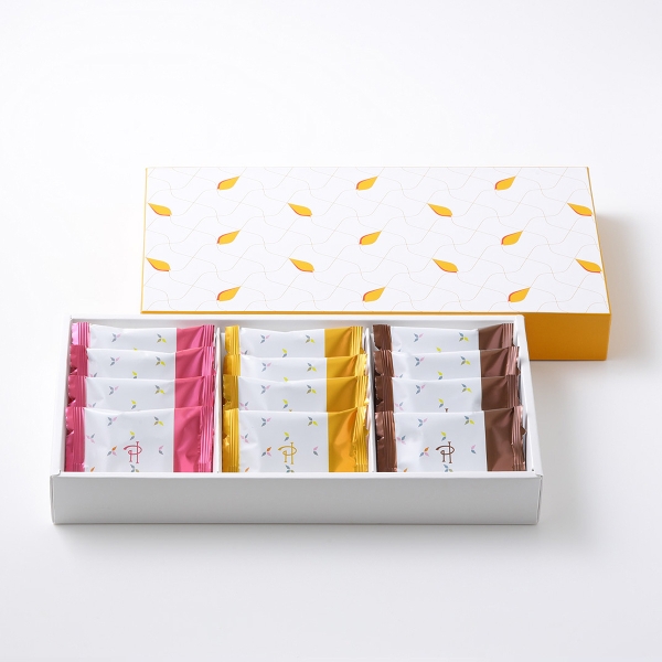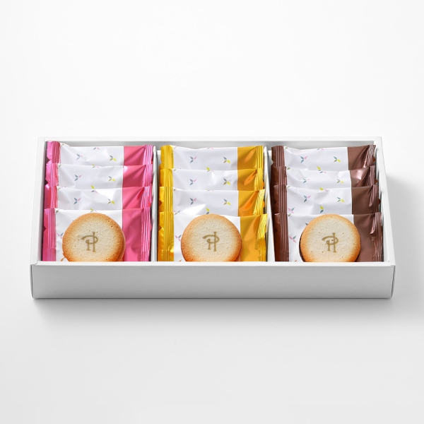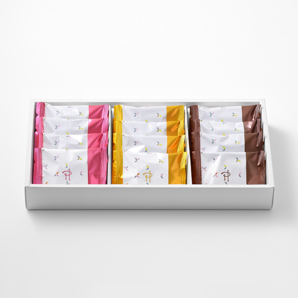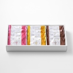 可愛らしい丸形のラング・ド・シャ。定番のミルクチョコレートとビターチョコレート、独創的な「イスパハン」、3種の詰合わせです。