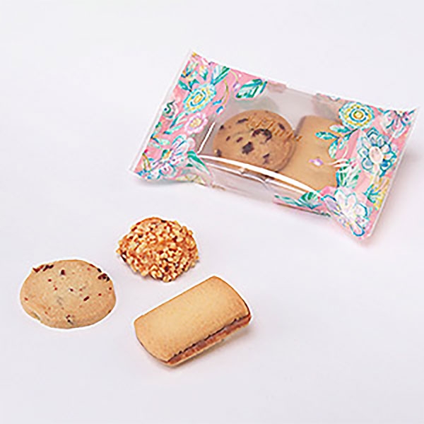 トレーに3種類のクッキーを詰め合わせました。アーモンド・チョコチップ・シナモンのAタイプ。アマンドロック・チョコサンド・クランベリーのBタイプ。2種類の小袋が6袋ずつ入っています。おしゃれでかわいい花柄のパッケージに入っているので、ちょっとしたプレゼントやプチギフトにも人気です。