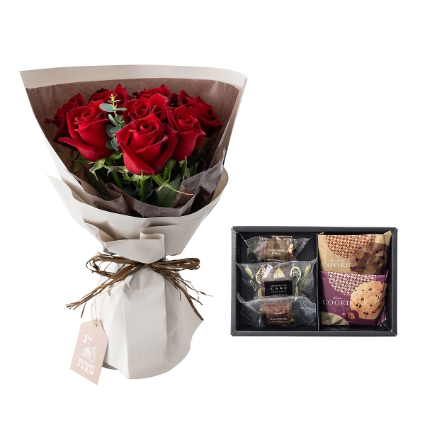 フリルブーケルージュ8本&ホテルオークラスイーツアソート5個