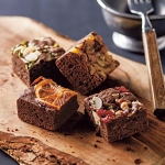 一緒にセットしたスイーツは、甘すぎない濃厚なチョコの味わいと、ザクザク刻んだナッツの香ばしさ、ドライフルーツの甘酸っぱさを、ひとくちサイズに焼きあげた、ちょっと贅沢なブラウニーです。