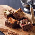 一緒にセットしたスイーツは、甘すぎない濃厚なチョコの味わいと、ザクザク刻んだナッツの香ばしさ、ドライフルーツの甘酸っぱさを、ひとくちサイズに焼きあげた、ちょっと贅沢なブラウニーです。