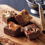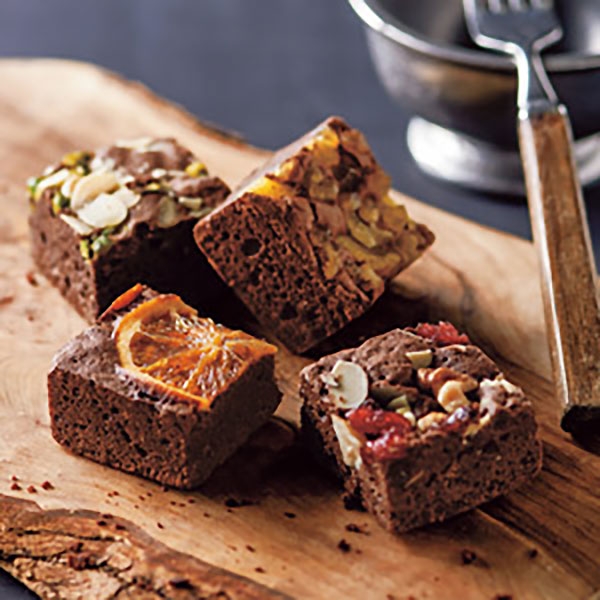 一緒にセットしたスイーツは、甘すぎない濃厚なチョコの味わいと、ザクザク刻んだナッツの香ばしさ、ドライフルーツの甘酸っぱさを、ひとくちサイズに焼きあげた、ちょっと贅沢なブラウニーです。