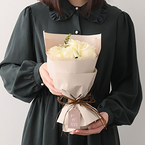 敬愛の気持ちをこめて贈るにふさわしい白バラ・アバランチェは、凛とした美しさと花保ちの良さで、もらった瞬間からはじまる花のある暮らしを演出します。男性へのギフトフラワーとしてもおすすめです。いよかんを生地に練り込んだチョコパウンドケーキは、柑橘類独特の酸味と芳醇な香りがチョコレートの甘さを引き立てます。大切な方の記念日に、想いを伝えたい時におすすめです。