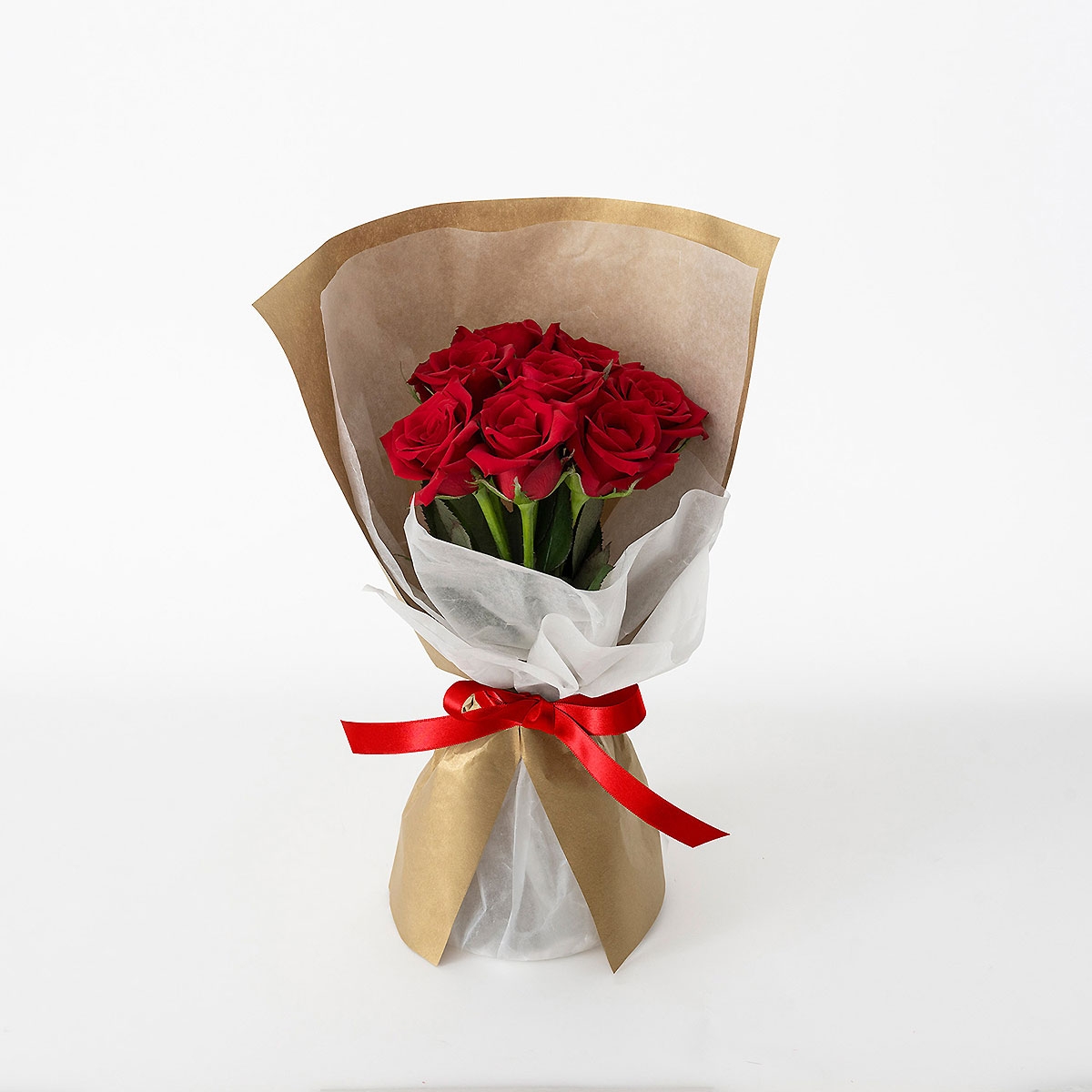 届いた姿でそのまま飾れるスタンディング薔薇ブーケ ルージュ8本