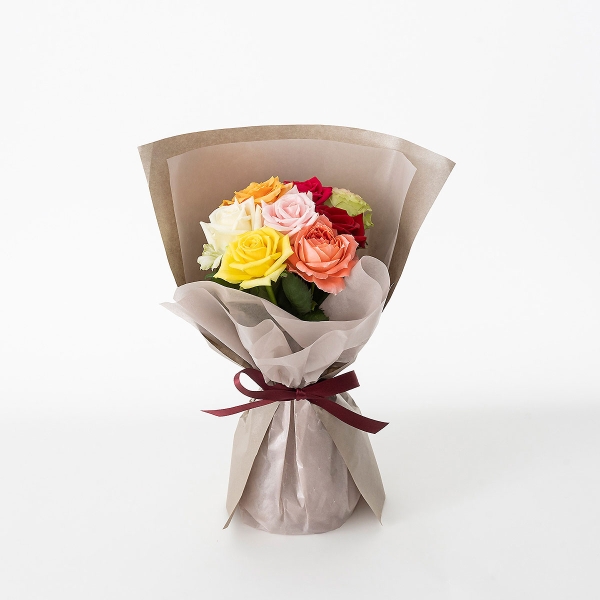 届いた姿でそのまま飾れるスタンディング薔薇ブーケ カラフル8本