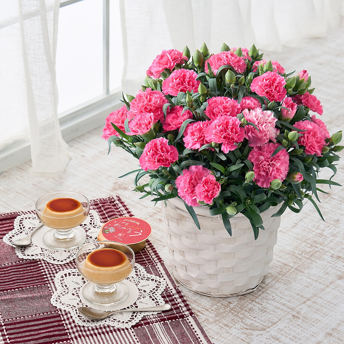 カーネーション鉢植え&たまご村プリン3個