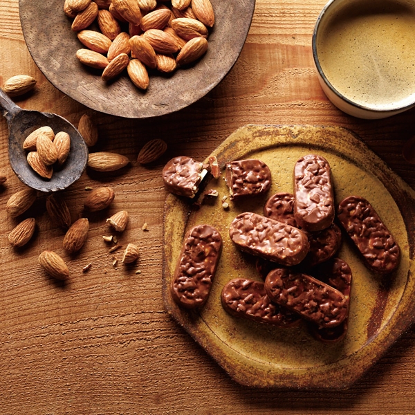 アーモンドを細かく刻み、ミルクチョコレートをたっぷり絡めたブロックチョコレート。アーモンドの香ばしい味わいとカリカリの食感が楽しめます。