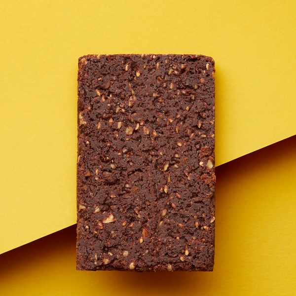 ローストアマニやチアシードなどの風味と食感が、生地のソフトな口当たりに弾けます。片面はカカオ75%ショコラでコーティング。