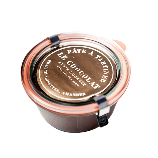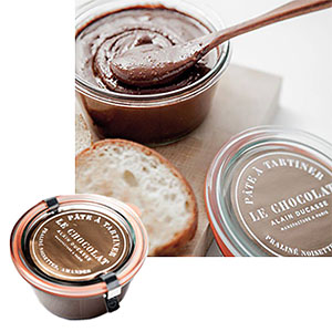 アーモンドとヘーゼルナッツのプラリネ、ショコラ・ノワールとショコラ・オ・レを混ぜ合わせたスプレッドは、なめらかな口溶けに残るザラッとした粒の舌ざわりが心地よい、子供から大人まで、誰をも笑顔にする味わいです。