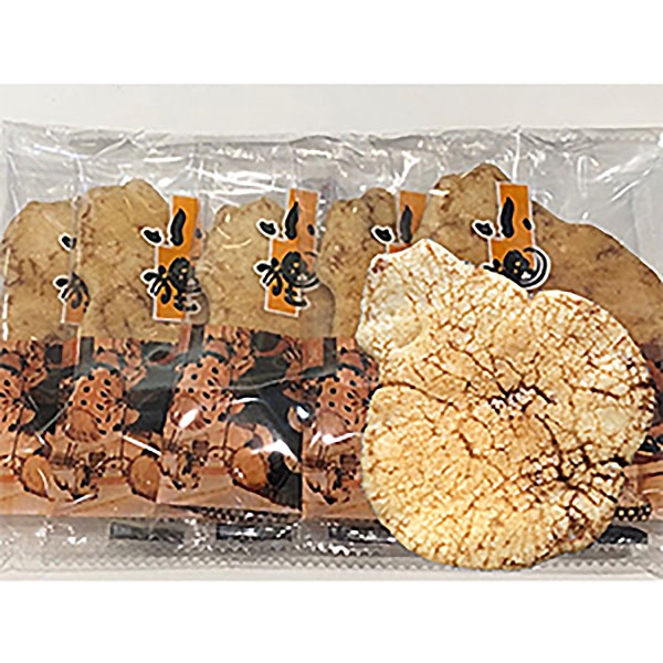 たぬき煎餅の代表的なお煎餅。薄口醤油を使った柔らかい軽焼き。女性に人気。お茶うけにおすすめです。