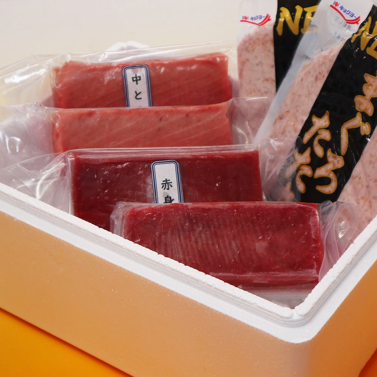 本まぐろ(養殖)「中とろ」「赤身」セットと「まぐろたたき」の詰め合わせ