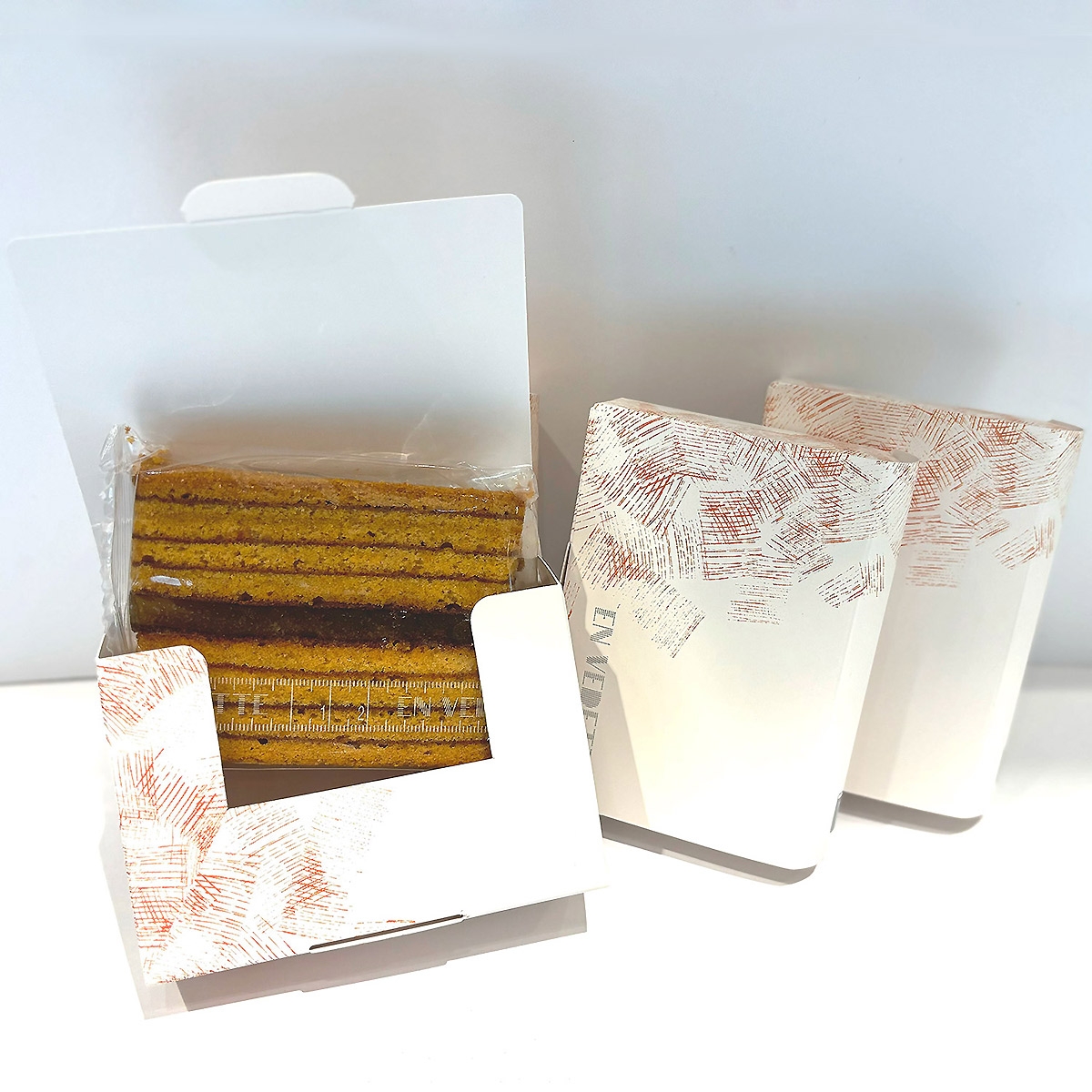 アーモンドのコク、バター香るしっとりとした食感のバウムクーヘンに色彩鮮やかな甘酸っぱい香りのパートドフリュイを合わせました。何層にも重なっているバウムクーヘンは本(リーヴル)をイメージしています。本に見立てたかわいらしいパッケージは、ちょっとした挨拶や御礼の手配りにぴったりです。