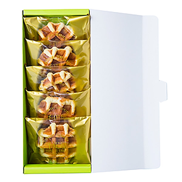 国産青肉メロン果汁を贅沢に使用したワッフルです。しっとりとしていて、メロンの芳醇な香りをお楽しみ頂けます。贈り物にも、自分へのおやつにもピッタリなワッフルです。
