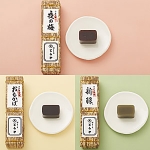竹皮包羊羹:小倉羊羹『夜の梅』、黒砂糖入羊羹『おもかげ』、抹茶入羊羹『新緑』各660g(330g×2)×各1本
