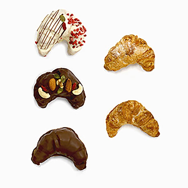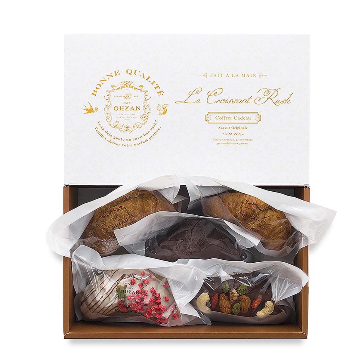 “スウィーツは可愛く”が私たちのお菓子作りの信条。すべて職人の手作業でひとつひとつ大切に作られた宝石のようなスウィーツです。生地が細かく軽い食感のクロワッサンをじっくり二度焼きすることでサクサクのラスクに仕上げています。大人可愛いトッピングは箱を開けた瞬間に幸せな気持ちになります。