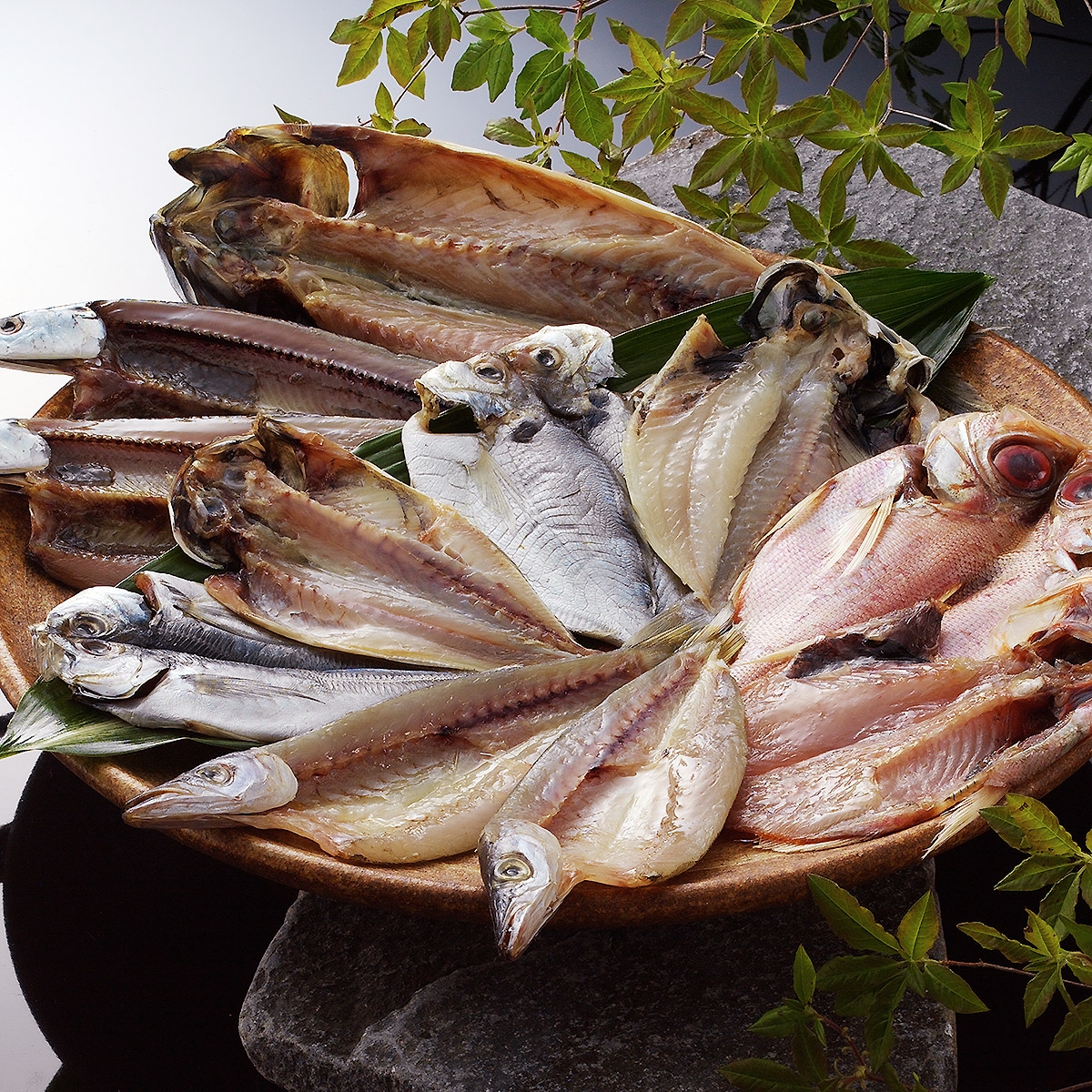 よく吟味された国内産の魚だけを使用し、富士山からの湧水と沖縄の真塩を用い手間暇かけて作り上げた、こだわりの無添加干物詰合せです。