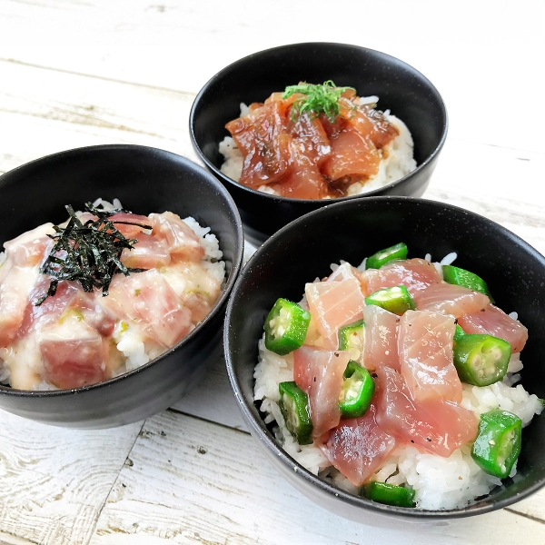 漬けまぐろ旨塩丼160g(80g×2)×4、漬けまぐろ山かけ丼140g(70g×2)×4、漬けまぐろ旨辛丼140g(70g×2)×4