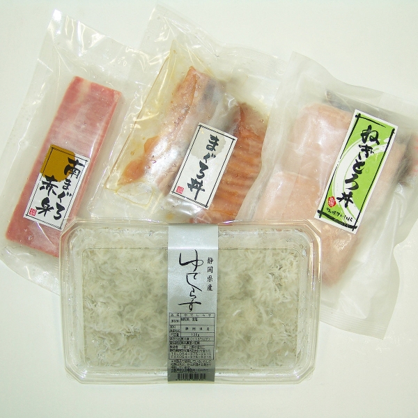 南まぐろ赤身150g、まぐろ丼(90g×2)、ねぎとろ丼160g、ゆでしらす130g