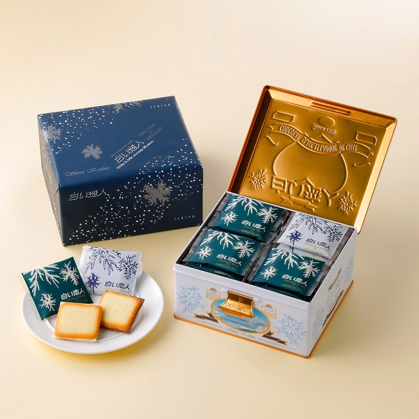 きれいな焼き色をつけたラング・ド・シャクッキーで、ホワイトチョコレートとオリジナルブレンドされたチョコレートをやさしくサンド。45年以上、愛され続けてきた「白い恋人」。