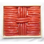 アラスカまたはオホーツク海域において、洋上船内で処理したスケソウダラ卵を瞬間凍結した鮮度の高い原卵を使用。虎杖浜の美味しい水と伯方の塩ベースで漬込みました。中サイズの1番手。