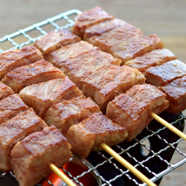 串に刺した肉の形状は様々なため、ダイス状のものや、薄切りカットをまとめた細切れの形状の肉が混在する場合がございます