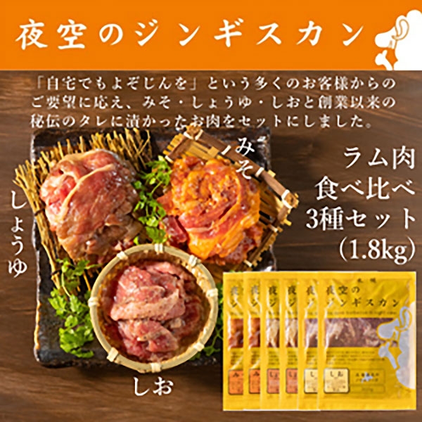 ≪夜空のジンギスカン≫味漬けラム肉食べ比べ3種セット(1.8kg)