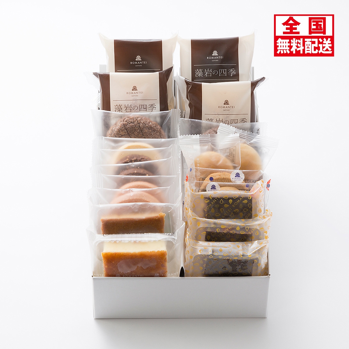 藻岩の四季(チョコ、ティラミス)×各2、札幌特濃ショコラ×3、札幌ろまん(くるみ黒糖、オレンジ)×各1、澄川サブレ(ショコラ、いちご、プレーン)×各2、北海道浪漫クッキー×2、澄川精進ほたるまんじゅう×2、藻岩の葉×2