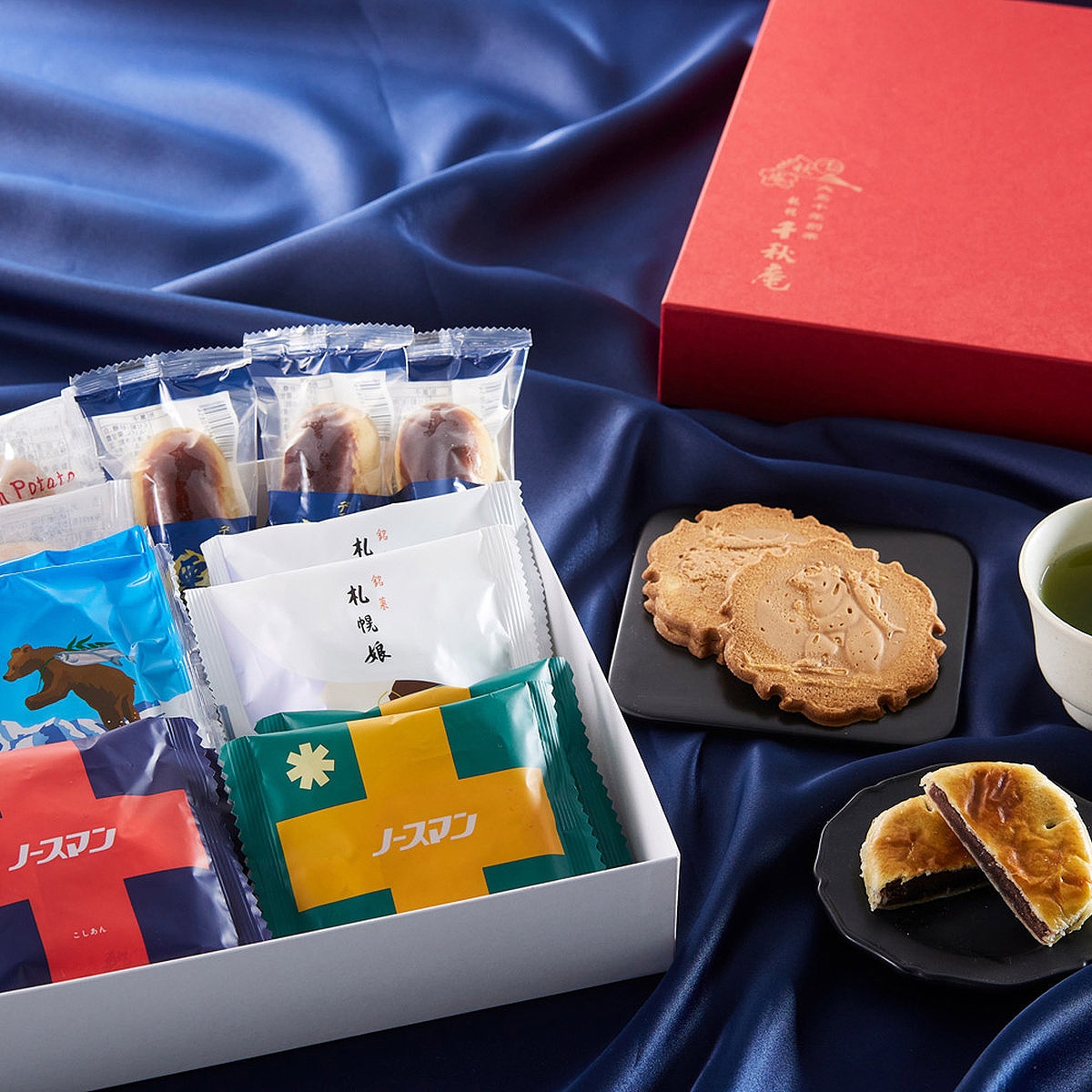 ノースマンこしあん×3個、ノースマンかぼちゃ×3個、山親爺(3枚包)×3個、ノースフォンポテト×2個、札幌娘×2個、デラックス栗まん×4個