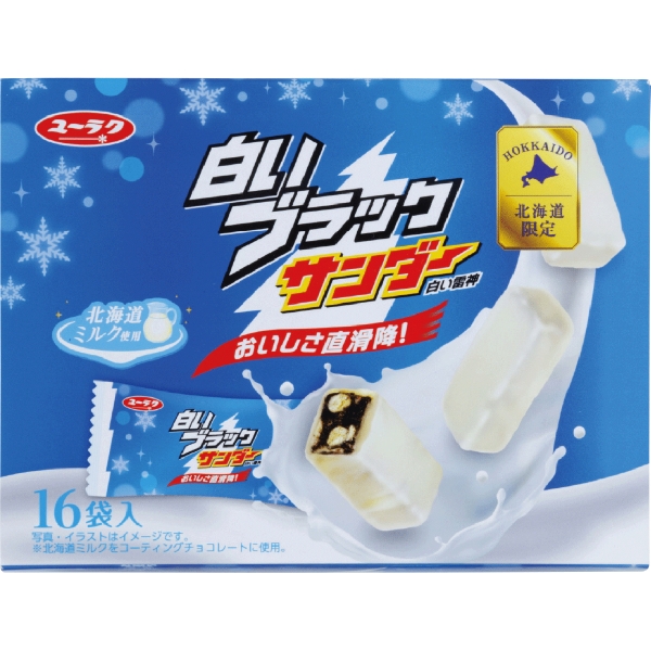 ホワイトチョコレートに北海道ミルクを贅沢に使用した、北海道限定のブラックサンダーです。