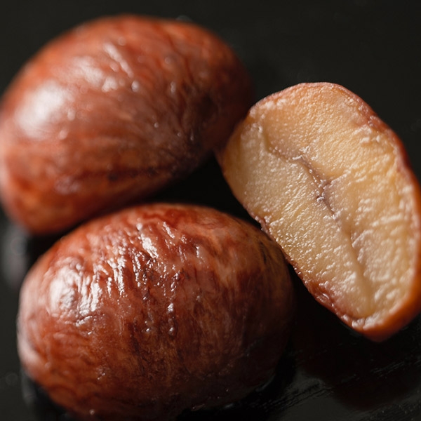小布施をはじめとする国産の上質な栗に砂糖だけを加えて、栗本来の風味をびんに閉じ込めました。ほのかな栗の香りがうれしい栗みつ、丹念に渋味を抜いた栗の渋皮煮の2種類をご用意しました。