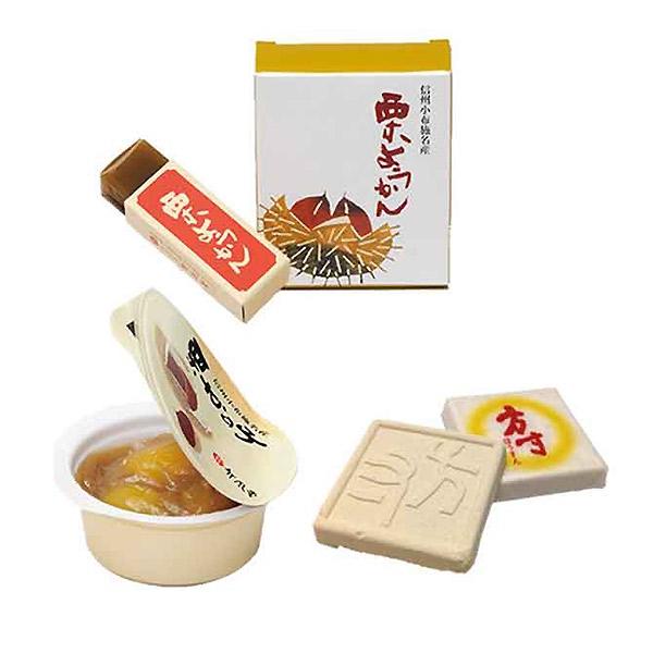 栗ようかん小形(2本入)×3、栗かの子小形×6、方寸(16枚入)×1