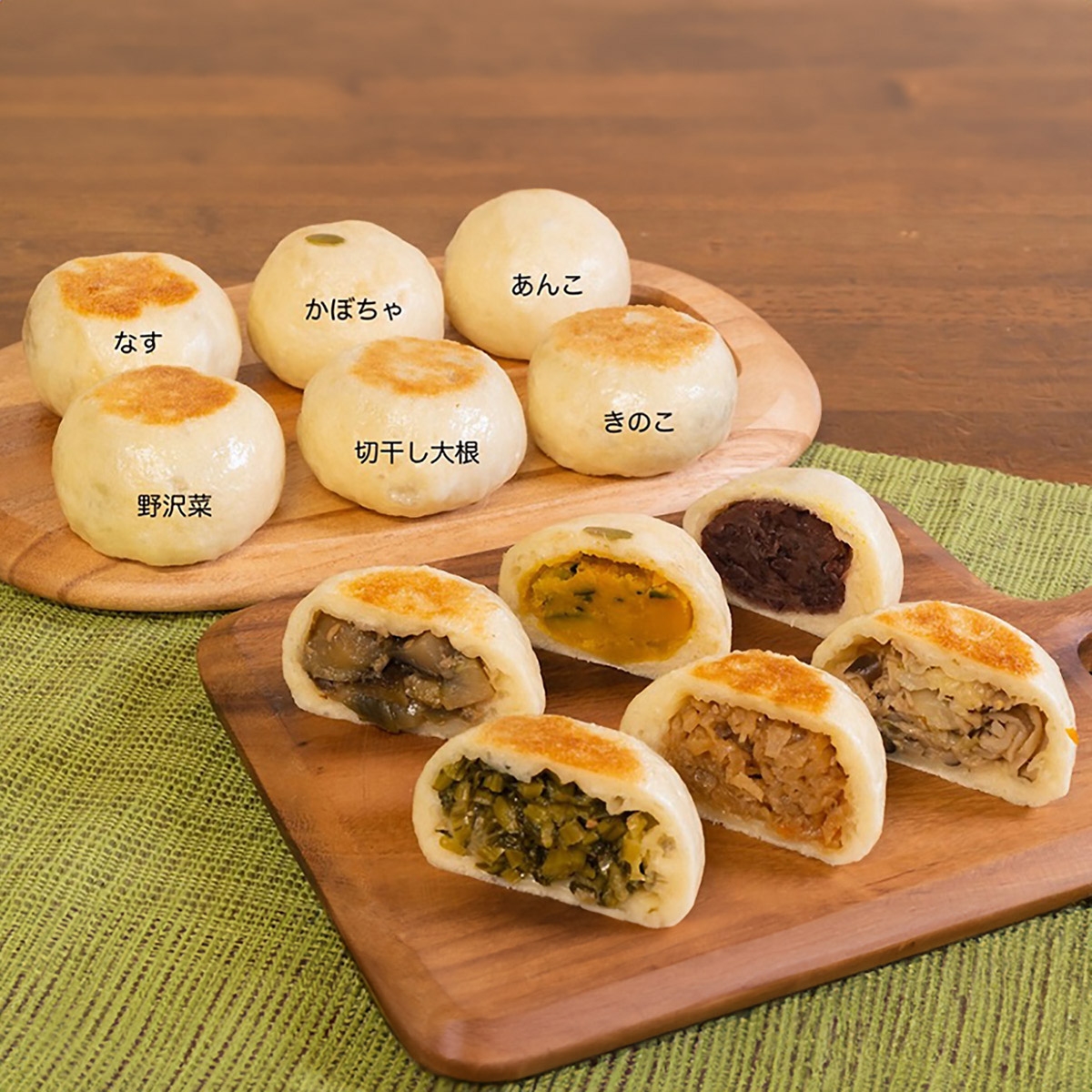 【おやき】地元のお母さん達が一つ一つ手作りで作る昔ながらのおやき。厳選された材料を使いをふっくらもちもちの皮でつつみ蒸しあげました。皮は香ばしくもちもち、具がたっぷりのおやきは栄養も満点です。急速冷凍パックでお届けします。