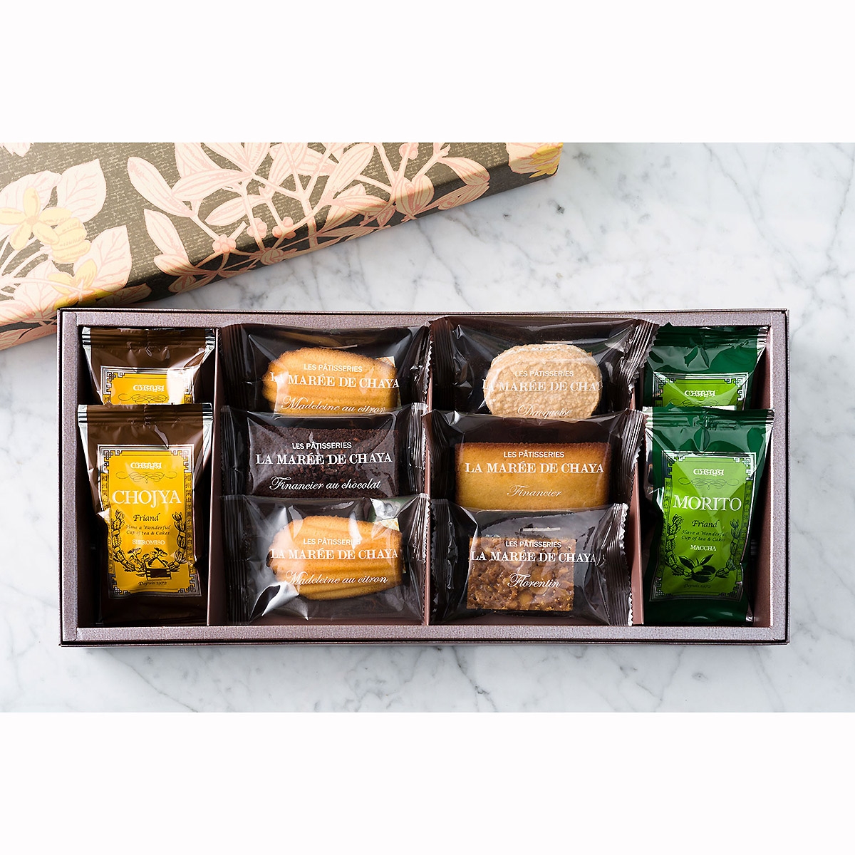 マドレーヌ・シトロン、白味噌フリアン、抹茶フリアン×各2個、ダクワーズ、フロランタン、フィナンシェ、ショコラフィナンシェ×各1個