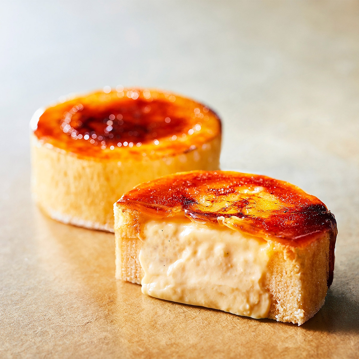 バウムクーヘンの中に濃厚なカスタードクリームを入れて、表面にグラニュー糖をかけたら、2回に分けてバーナーで丁寧に焼き色を付けていきます。2回に分けることでパリッとした食感になり、カスタードクリームの甘さに焦がしたグラニュー糖のほろ苦さがぴったり。販売開始1時間で即完売した人気のクレームブリュレは自分へのご褒美スイーツに幅広くご利用いただいてる人気スイーツです。