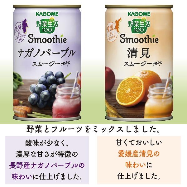野菜生活100Smoothie(清見スムージーmix・二十世紀梨スムージーmix・博多あまおうスムージーmix・いちじくスムージーmix 各160g×3、シークヮーサースムージーmix・ナガノパープルスムージーmix 各160g×2) 計16