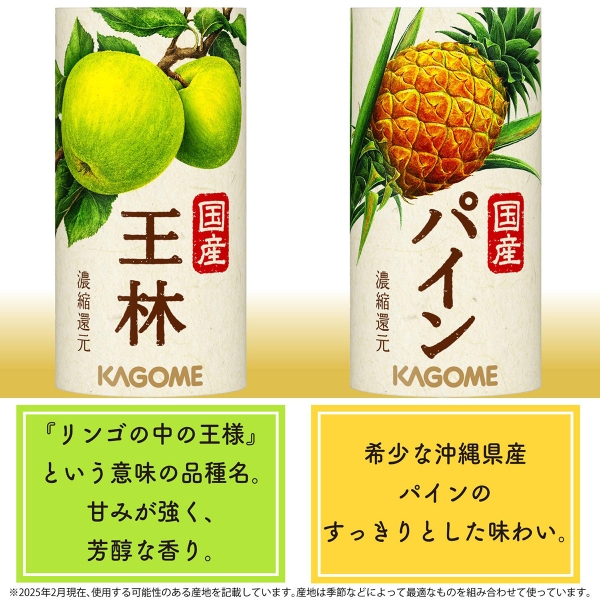 小ぶりなつぶより野菜 130g×4、国産ふじ 125ml×4、国産王林、国産白桃、国産パイン 各125ml×2 計14本