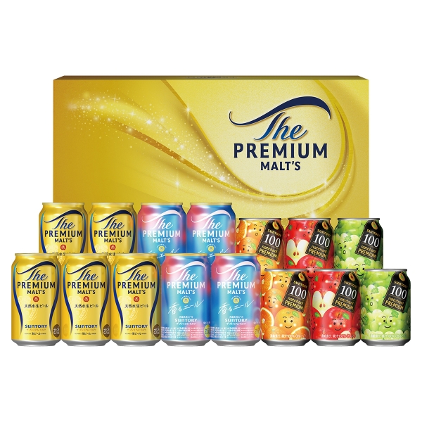 ザ プレミアム モルツ350ml×5、香るエール350ml×4/なっちゃん100:オレンジ・りんご・白ぶどう 各290ml×2