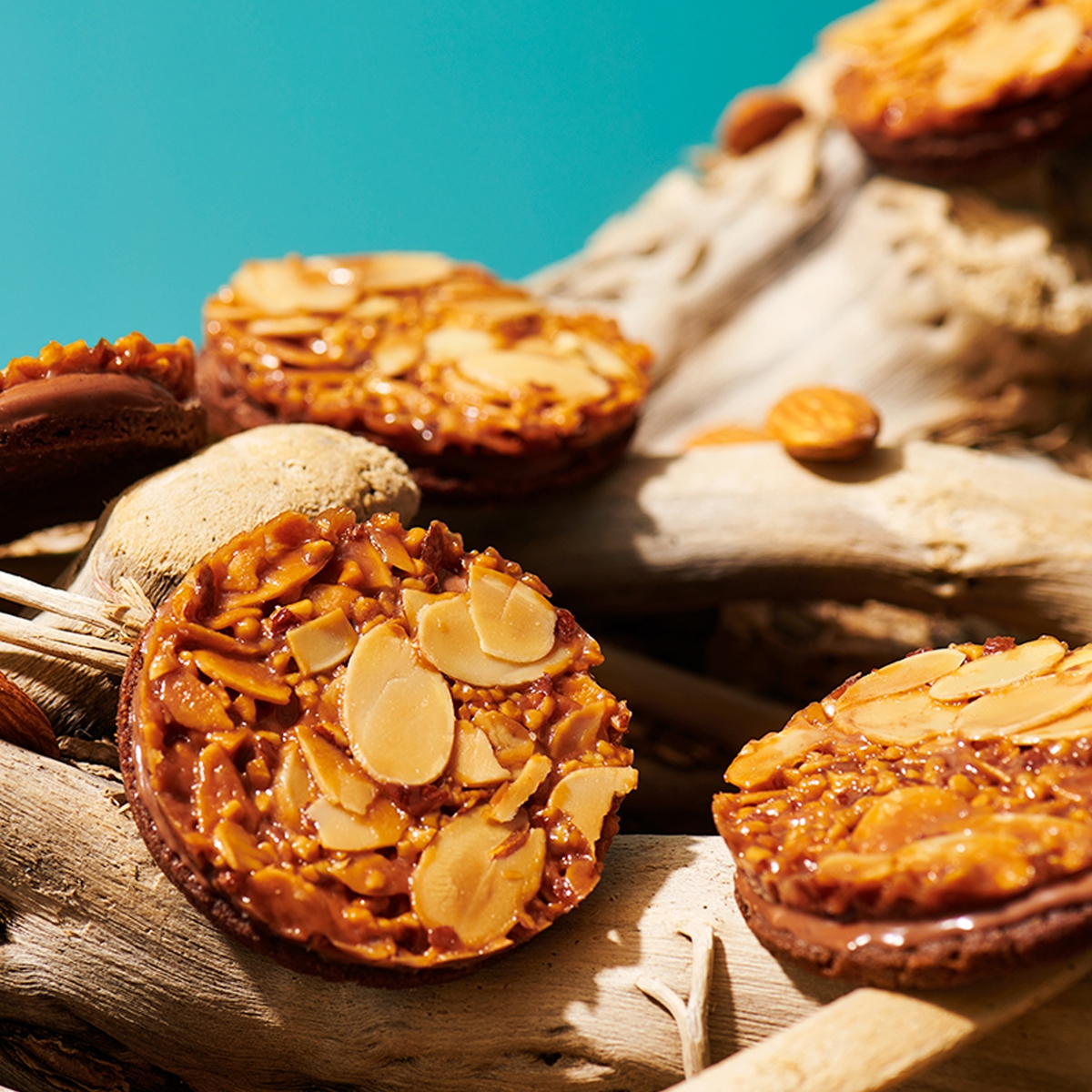 香ばしくキャラメリゼしたアーモンドチュイル、濃厚なコクのジャンドゥーヤチョコレート、食べた瞬間にほどけるザクホロ食感のシュトロイゼルの3層で出来たあたらしいフロランタンです。