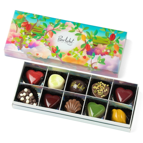 ストロベリー香るプラリネをはじめ、パッションフルーツのガナッシュや、ゆずのキャラメルと幅広くアソートされた贅沢なアソート。心踊るボンボンで楽しい時間を。
