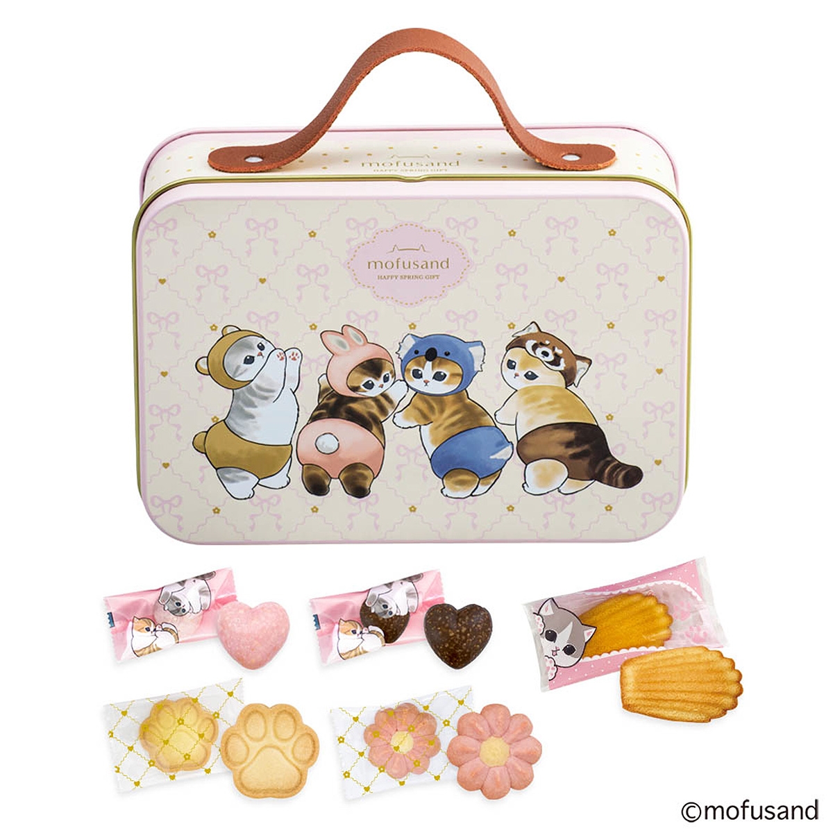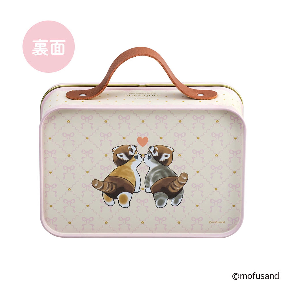 合皮取手付きトランク缶にお菓子を詰合せた商品です。
