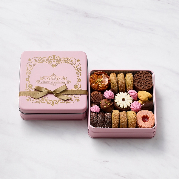 宝石箱のような詰合せ:パティシエのこだわりが詰まった風味豊かなこの時期だけの特別なクッキー缶。サックリ、カリッ、ザクッ、しっとりと素材に合わせた異なる食感と共にお楽しみください。
