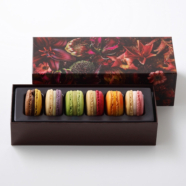 毎年ホワイトデーの人気ナンバー1アイテム。バニラとスミレとカシスの「アンヴィ」やピスタチオ尽くしの「アンフィニマン ピスターシュ」など、春の訪れを感じる華やかなマカロンを詰め合わせました。フラワーアーティスト東信さんによるアレンジメントを施した限定BOXでお届けいたします。