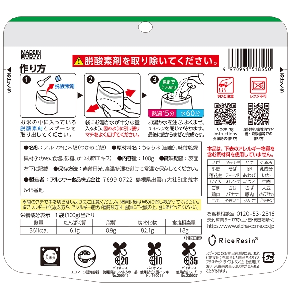 ≪防災特集≫アルファー食品 安心米 わかめご飯