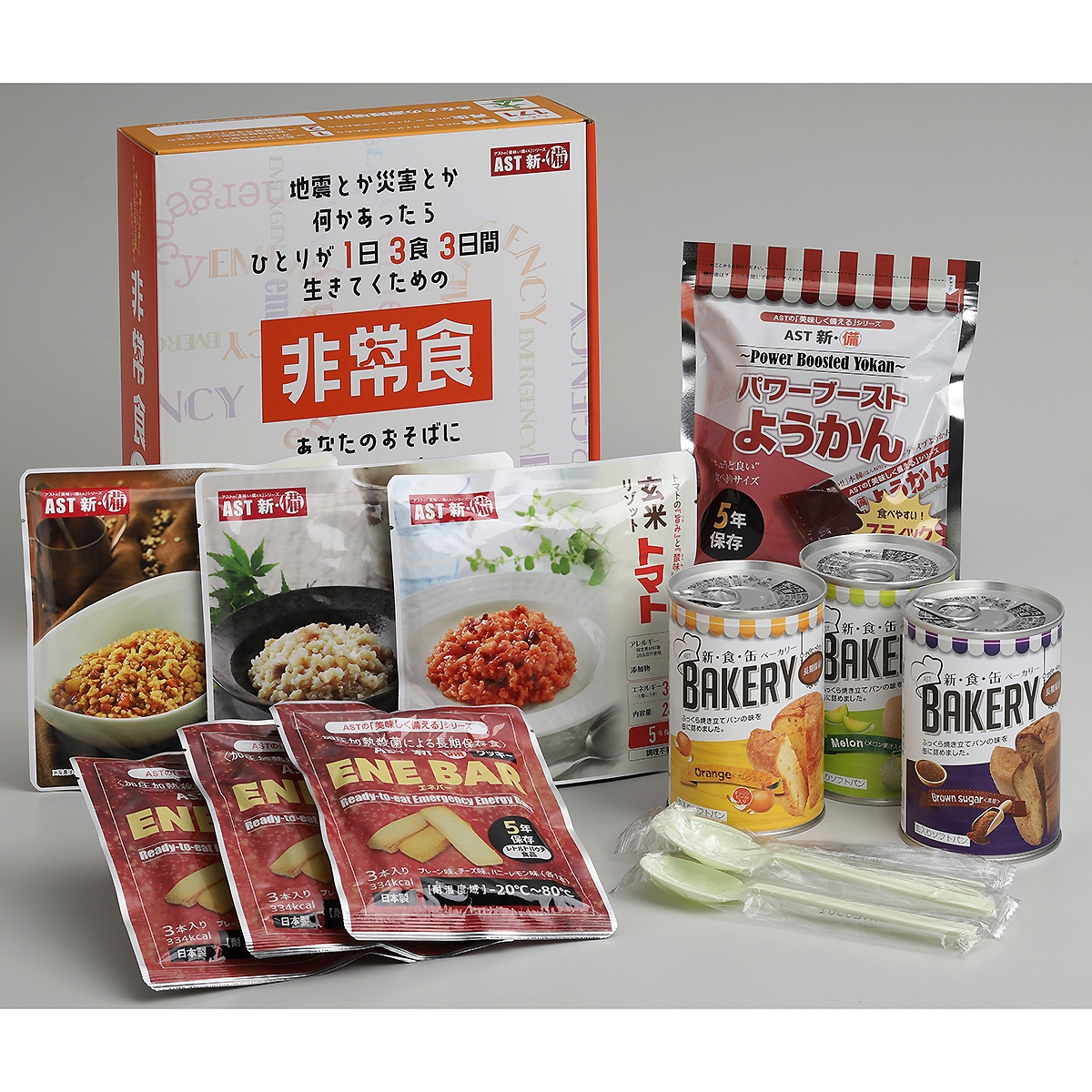 AST新・食・缶ベーカリー(黒糖・メロン・オレンジ× 各1)、AST新・備 玄米リゾット(和風・トマト・カレー×各1)、AST新・備 ENE BARクッキー3本入り(70g)×3、AST新・備 パワーブーストようかん 45g×6本入り×1