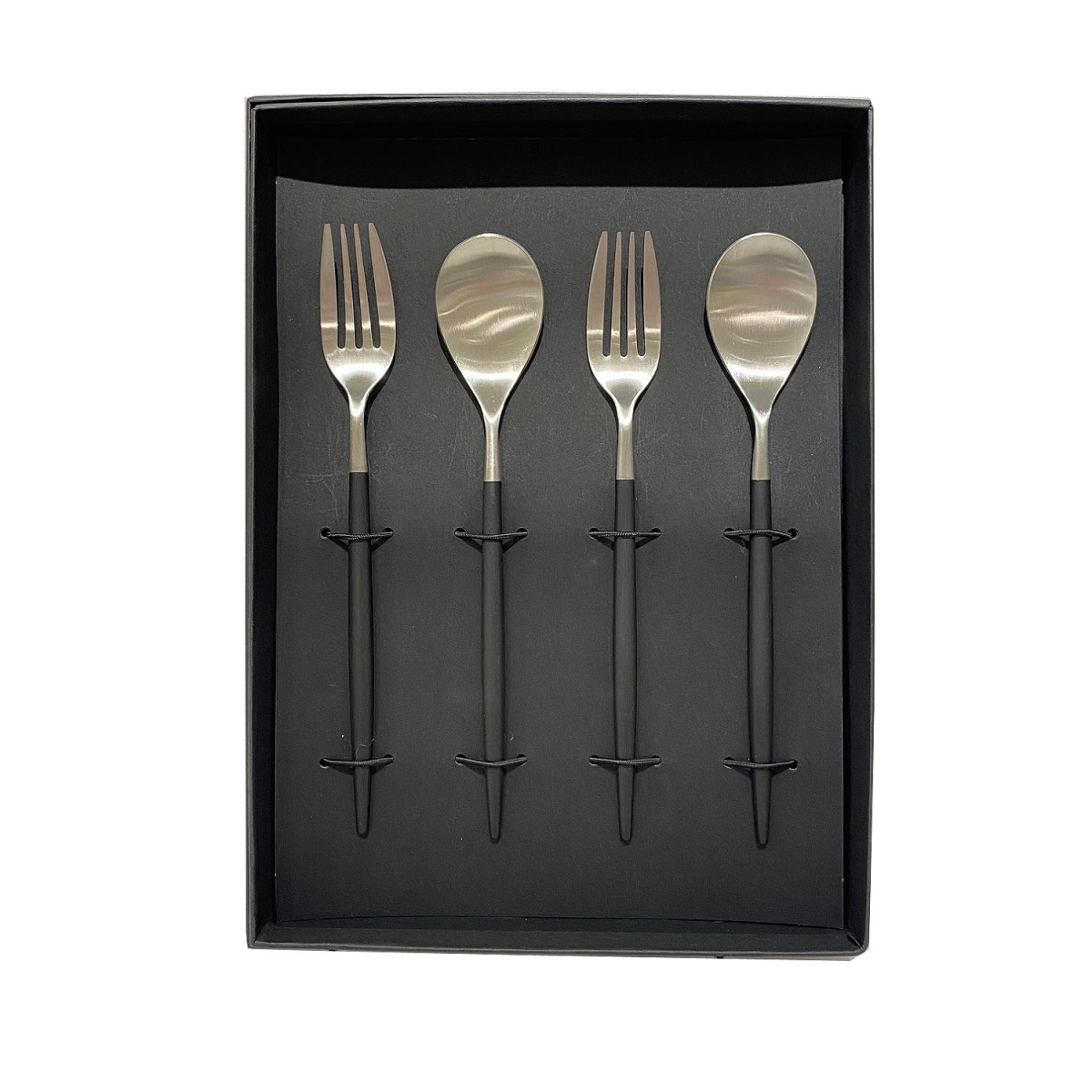 ≪クチポール (Cutipol)≫MIOブラック×シルバー・デザートフォーク×デザートスプーンセット ギフトBOX入り