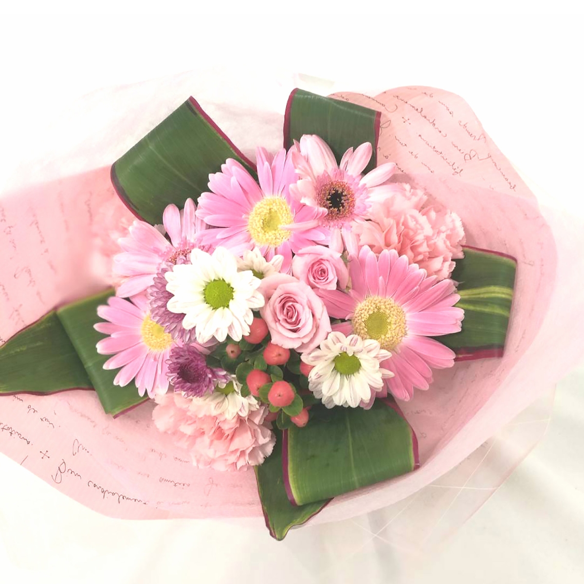 デザイナーにおまかせ!ピンクブーケです。可愛い色合いで各種お祝いや、プレゼントにおすすめです。